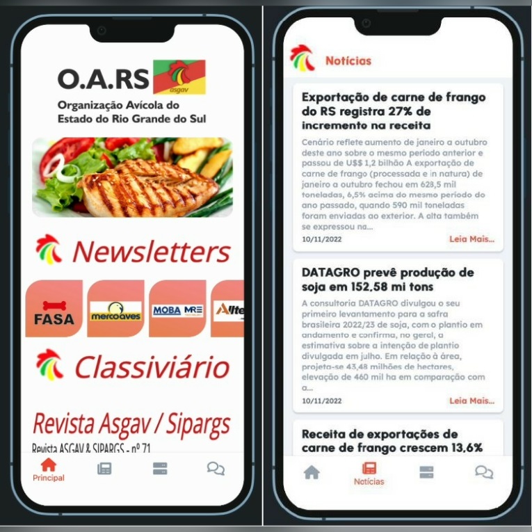 O presidente executivo da OARS, José Eduardo dos Santos, comentou que a tecnologia é uma obstinação da área, integrando as rotinas produtivas dos alimentos e também melhorando e otimizando os canais de comunicação da avicultura do RS. “O aplicativo vem para somar a um trabalho cada vez mais consolidado do setor no universo virtual. É também uma consequência evolutiva da atuação forte da avicultura das redes sociais, que cada vez aumenta o engajamento junto aos elos da cadeia e também aos consumidores”, relatou.